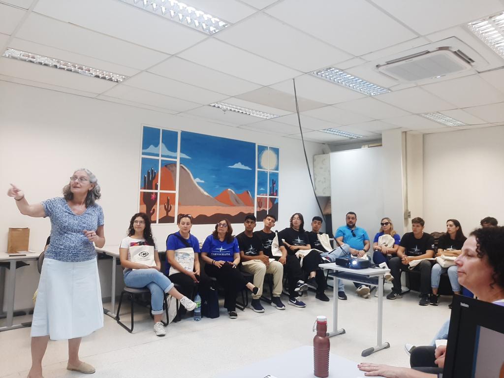 Após a visita na Sala de Situação, os alunos e professores se dirigiram à sala da Universidade Estadual Paulista (Unesp), ao lado do Cemaden, no Parque de Inovação Tecnológica de São José dos Campos. Foram recepcionados pela professora Tatiana Sussel Mendes, do Curso de Engenharia Ambiental, do Instituto de Ciência e Tecnologia da Unesp.