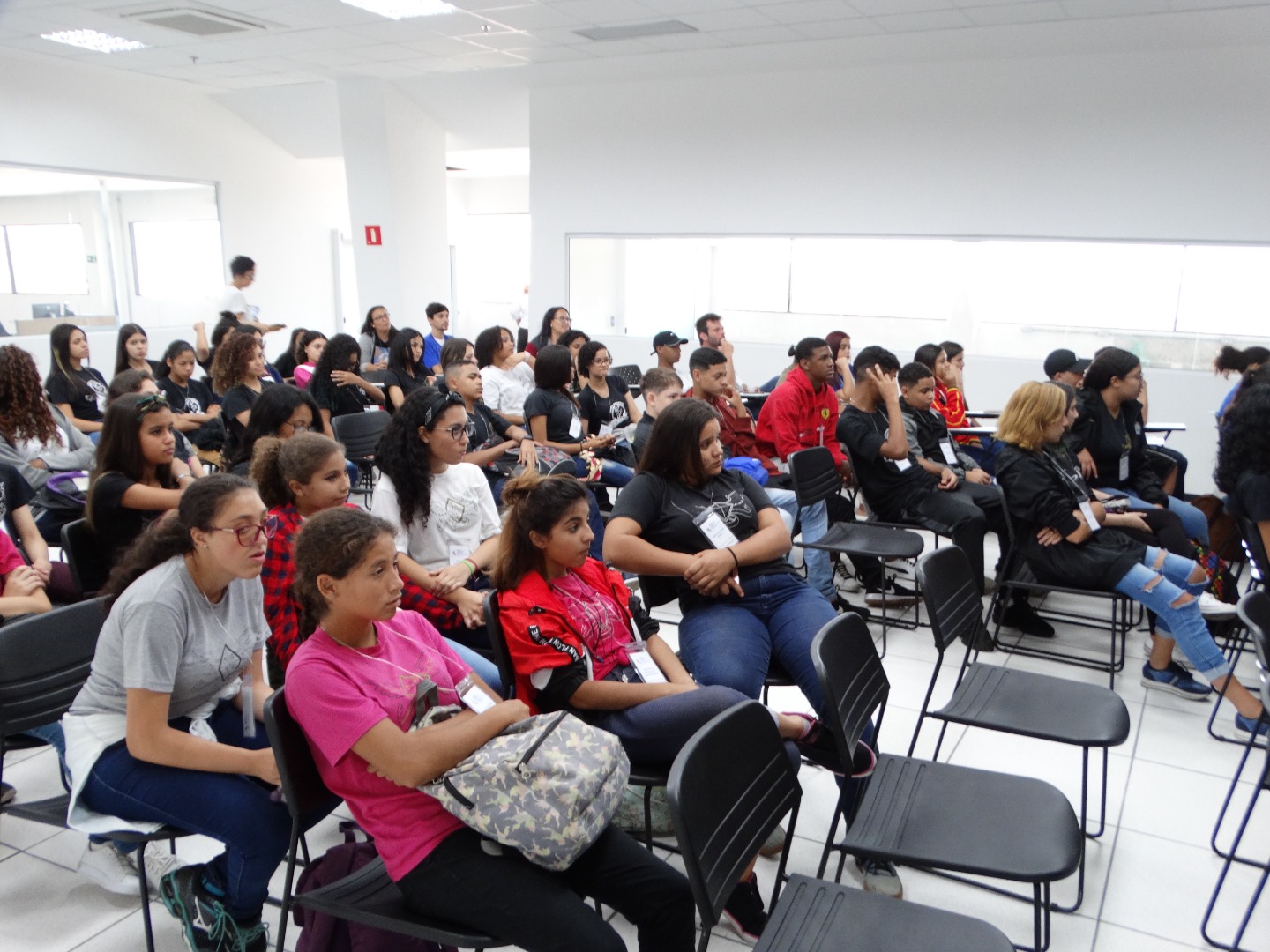 Outra escola do Vale do Paraíba que participou das oficinas, palestras e visitas técnicas foi a E.E.Alexandrina Gomes de Araújo Rodrigues, do município paulista de Pindamonhangaba. O professor Demétrio da Mota Lima e as professoras Cibelli Skupien Monteiro e Maria Helena da Silva Souza acompanharam os alunos de Pindamonhangaba.