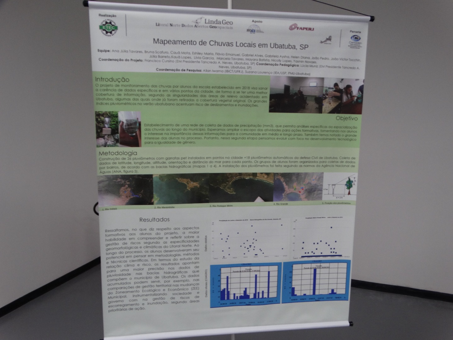 Alunos das escolas Municipal Presidente Tancredo de Almeida Neves apresentaram os gráficos sobre os resultados obtidos na coleta de dados de chuva no município de Ubatuba (SP). O projeto nasceu em 2018, como ação complementar ao conteúdo de Geografia relativo ao 1º ano do Ensino Médio do curso de Contabilidade. O objetivo era estabelecer uma rede de coleta de dados de precipitação (mm³) que permitisse uma análise mais específica da espacialização das chuvas, de acordo com o território do município de Ubatuba. Sob a orientação do professor Francisco Cursino e do pesquisador Allan Ywana, os alunos construíram pluviômetros usando garrafas de material PET e instalaram nas próprias residências. Após essa etapa, foram orientados a observar e anotar, diariamente, durante um período pré-determinado, o índice pluviométrico indicado pelo equipamento. Neste ano, dando continuidade ao projeto, foi feita a coleta, no mesmo período. Atualmente, estão elaborando novos gráficos para estudo comparativo dos dados, com o apoio da Prefeitura de Ubatuba, orientados pela coordenadora pedagógica da escola, professora Lúcia Muniz, e da professora e pesquisadora Suzana Cristina Lourenço.