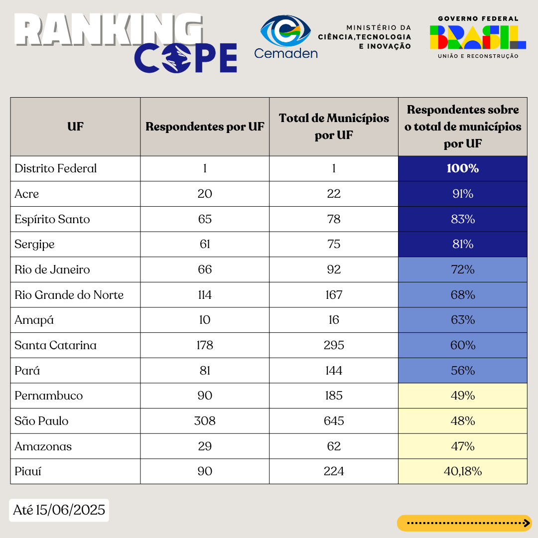 Ranking dos Municípios que responderam o questionário do Projeto COPE.