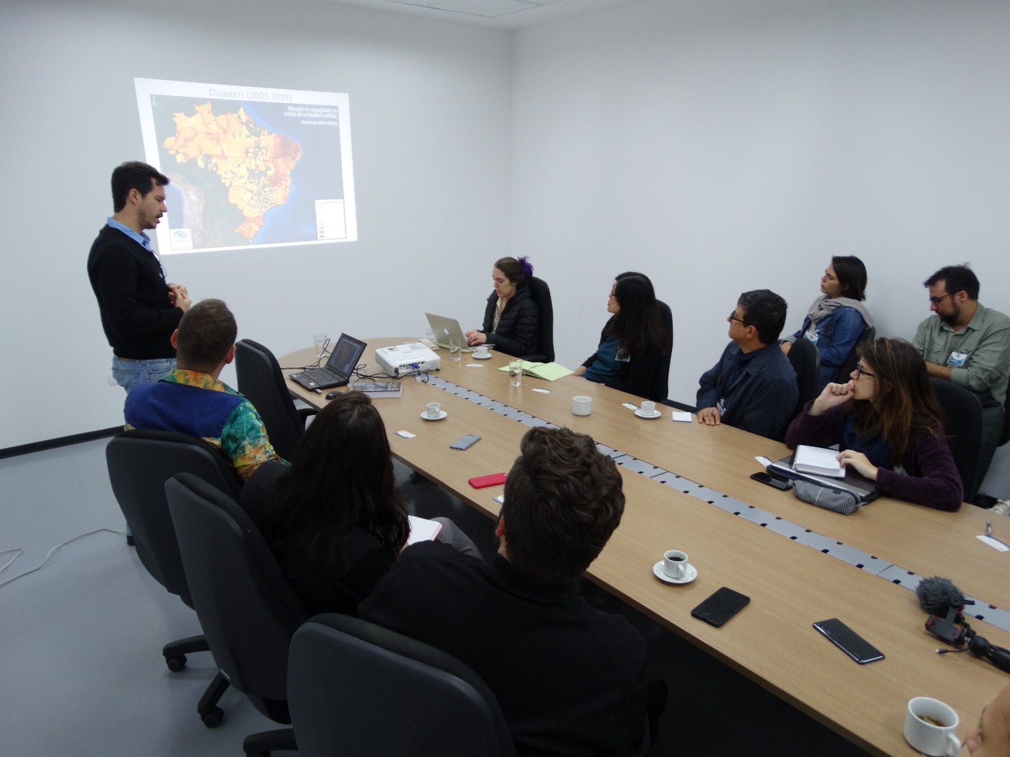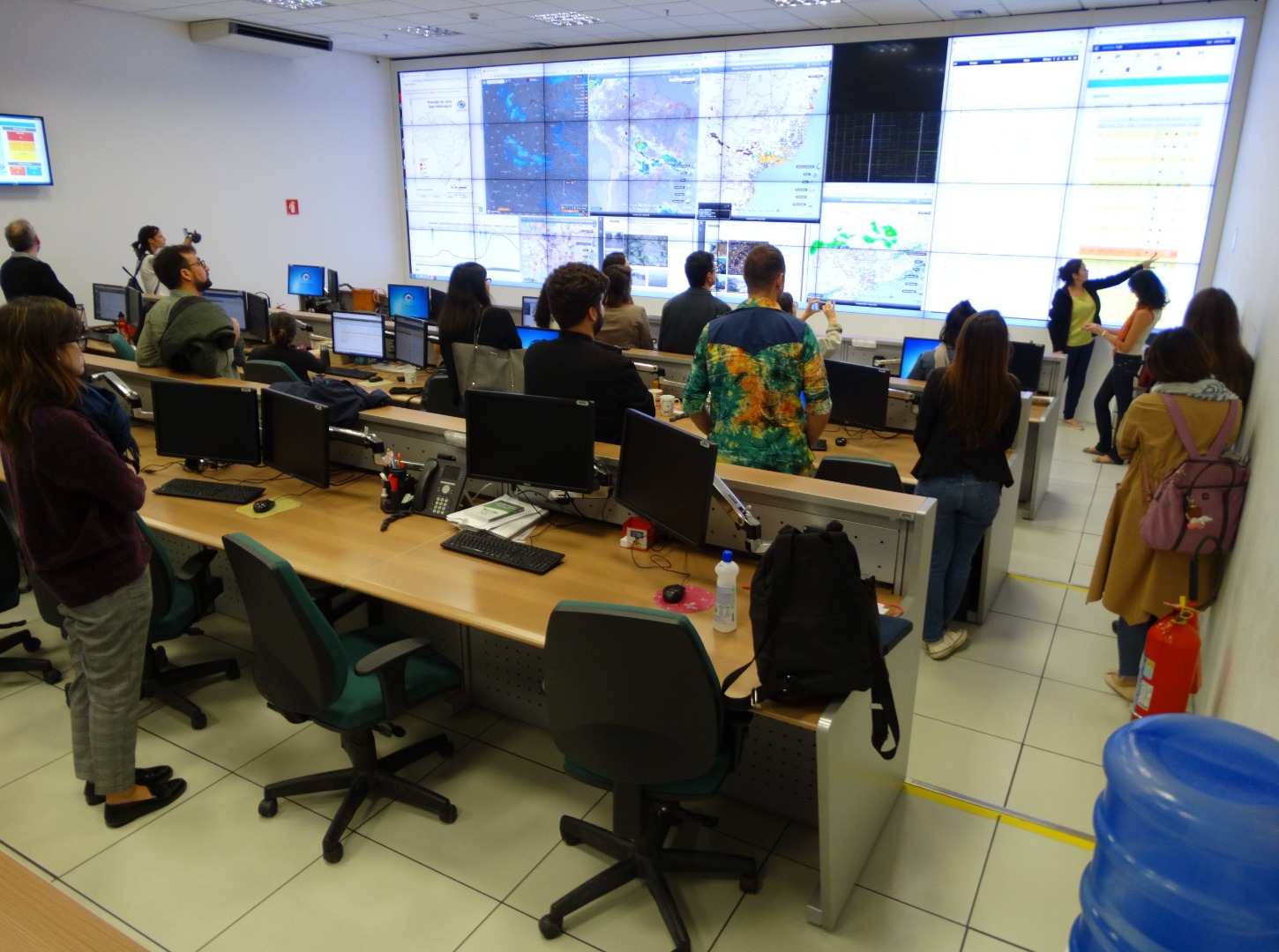No Cemaden, a comitiva foi recepcionada pelo pesquisador Victor Marchezini, que apresentou as linhas de pesquisas da instituição. Em seguida, visitaram a Sala de Situação e tiveram apresentação das tecnologistas Paula Campos e Carla Prieto, que respectivamente, abordaram sobre o monitoramento dos Extremos Hidrológicos e Geodinâmica.