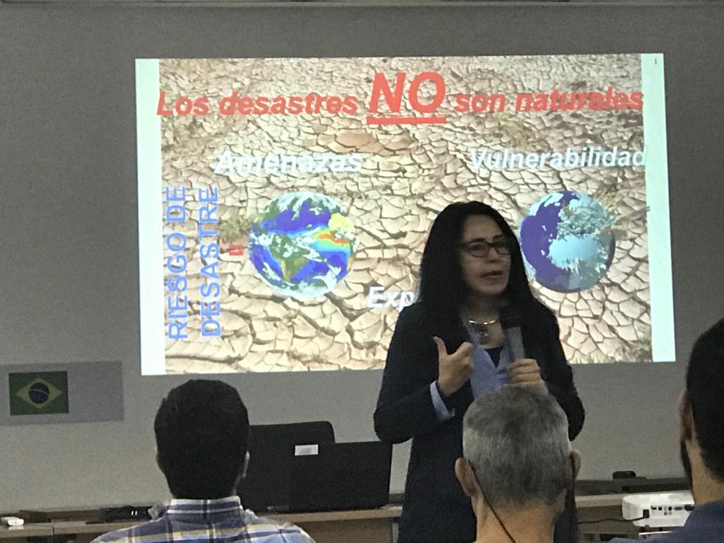 “Os desastres não são naturais”, enfatiza a cientista. Discorre sobre vulnerabilidades e as predisposições das comunidades para serem afetadas pelas ameaças. Entre as predisposições estão: as condições socioeconômicas, políticas, culturais e ambientais. Expôs sete desafios estratégicos importantes para a elaboração e implementação das políticas para a redução dos impactos dos desastres. Entre os desafios, cita: o fomento e ampliação de pesquisas e conhecimentos; a interpretação das informações, dos dados e conhecimentos no processo de comunicação; acesso da utilização de avanços tecnológicos pela pesquisa, para o desenvolvimento de capacidades e formulação de políticas públicas.