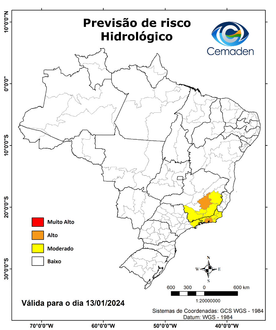 13/01/2024 - Previsão de Riscos Geo-Hidrológicos