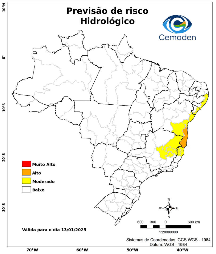 13/01/2025 - Previsão de Riscos Geo-Hidrológicos