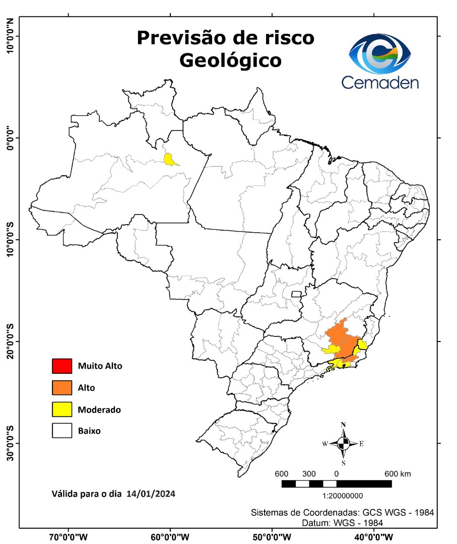 14/01/2024 - Previsão de Riscos Geo-Hidrológicos
