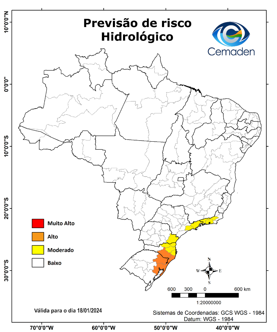 18/01/2024 - Previsão de Riscos Geo-Hidrológicos
