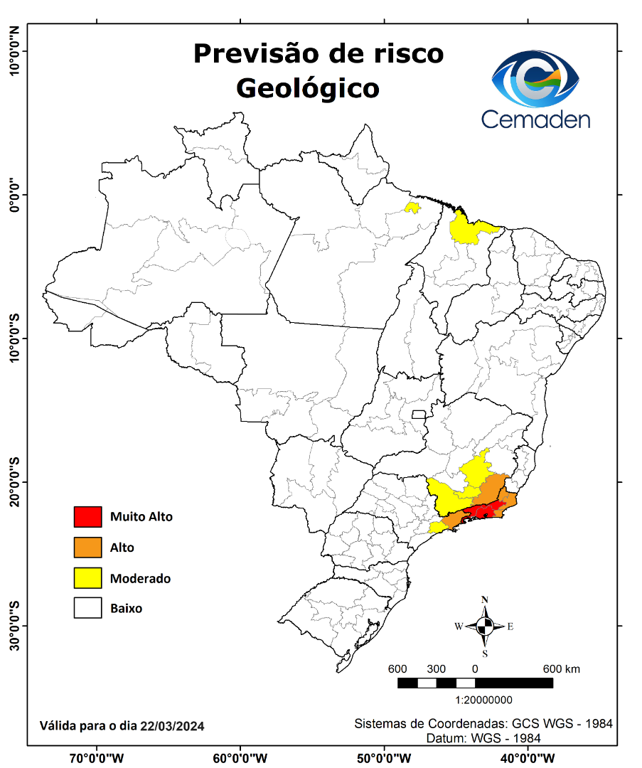 Previsão de riscos geo-hidrológicos para 22/03/2024