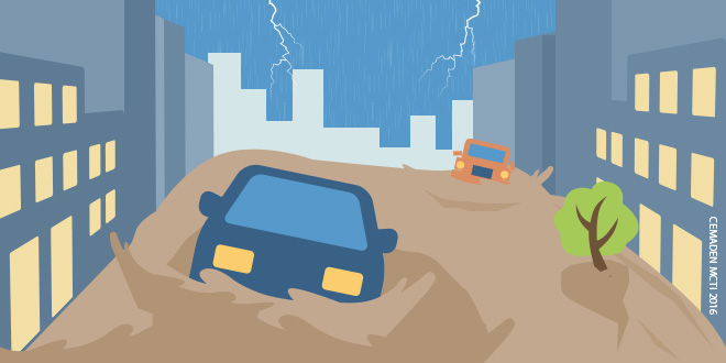 A enxurrada pode ser identificada pelo escoamento superficial concentrado e com alta energia de transporte, que pode estar ou não associado ao domínio fluvial (do rio). Provocado por chuvas intensas e concentradas, normalmente em pequenas bacias de relevo acidentado [i]. Caracterizada pela elevação súbita das vazões de determinada drenagem e transbordamento brusco da calha fluvial. Este processo apresenta grande poder destrutivo.