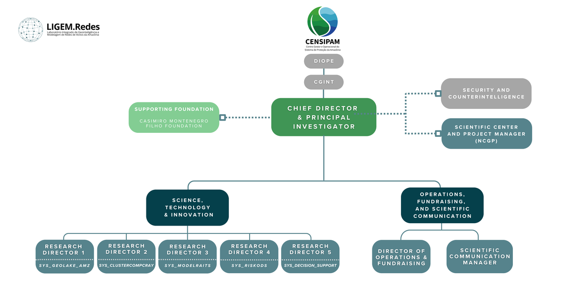 Composed of 15 PhD researchers (6 in loco and 9 from partner institutions), specialists in various fields such as remote sensing, big data, artificial intelligence, high-performance computing, SDD (security, development, and defense), statistical and econometric modeling, criminology, geointelligence, social and behavioral sciences, impact assessment, networks, optimization, simulation, and air and ground mobility; in addition to master’s, doctoral, and postdoctoral fellows.
