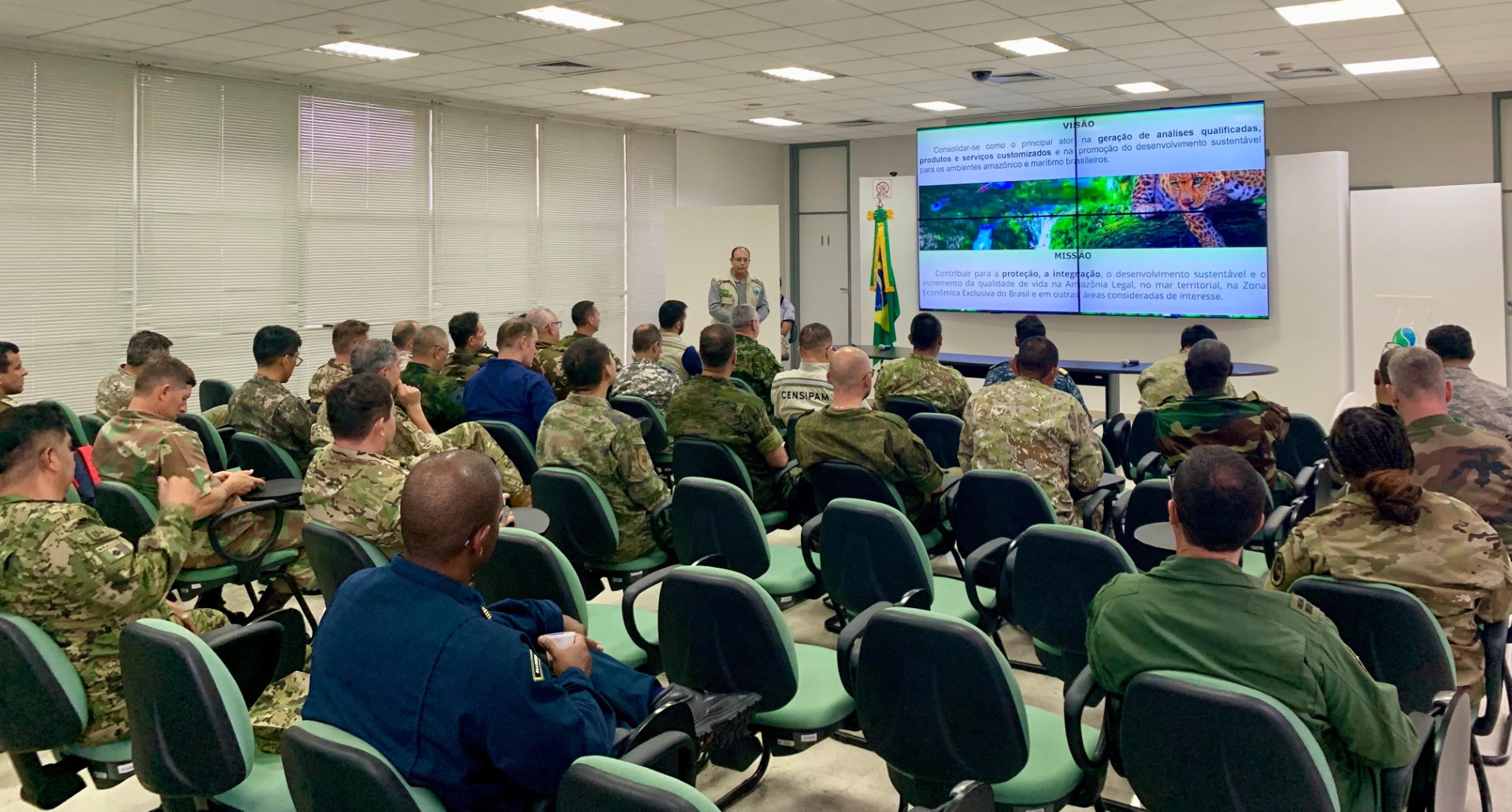 Manaus (AM), 01/09/2025 – O Centro Regional de Manaus (CR-MN) do Centro Gestor e Operacional do Sistema de Proteção da Amazônia (Censipam) recebeu, na última quarta-feira (27), a visita de 35 adidos militares estrangeiros, acompanhados por três oficiais superiores e dois auxiliares do Ministério da Defesa, totalizando 40 participantes. O objetivo do encontro foi apresentar às delegações internacionais as atribuições, capacidades e atividades do Censipam em Manaus, reforçando seu papel estratégico no monitoramento e proteção da Amazônia.