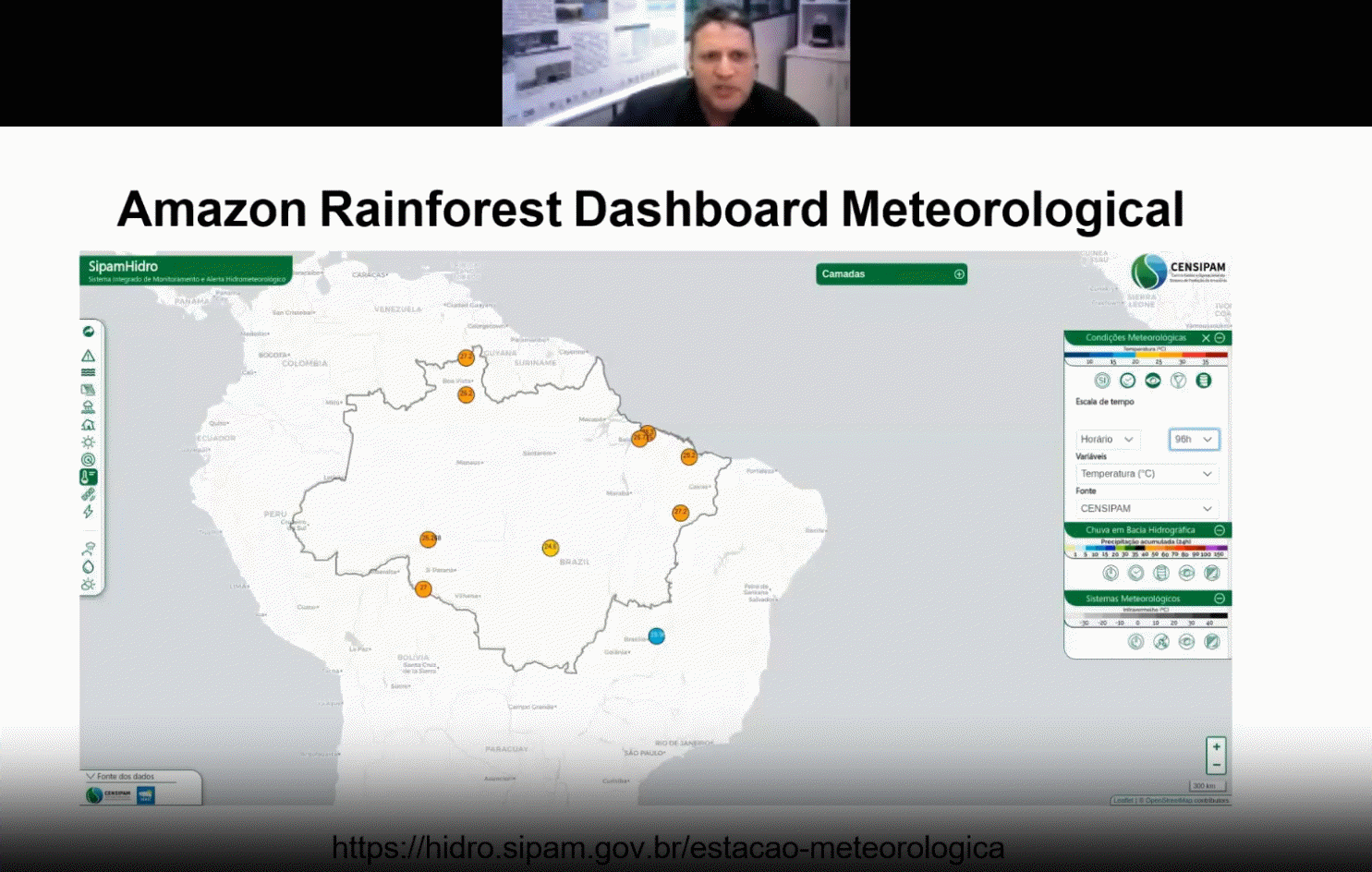 A apresentação incluiu fotos, mapas e diagramas explicativos dos sistemas que abastecem o Painel SIPAMHidro, plataforma essencial para o monitoramento hidrometeorológico da região. Segundo o analista, “a Plataforma SIPAMHidro e o trabalho das equipes técnicas envolvidas em sua manutenção e suporte continuados estão sendo reconhecidos internacionalmente, se consolidando como referência entre os gestores do maior e mais importante sistema de coleta de dados meteorológicos das Américas”.