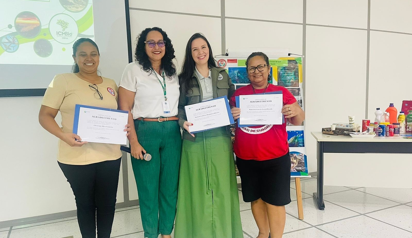 A programação contou com a participação da servidora do ICMBio Michele Ribeiro e das representantes da Associação de Catadores Filhos de Guadalupe, Lucimar Obando e Gleiciane Ferreira. As palestras promoveram reflexões sobre descarte correto de resíduos, papel dos servidores na implantação da coleta seletiva, incentivo à redução do desperdício e valorização das parcerias com cooperativas de catadores, que contribuem para inclusão social e geração de renda.