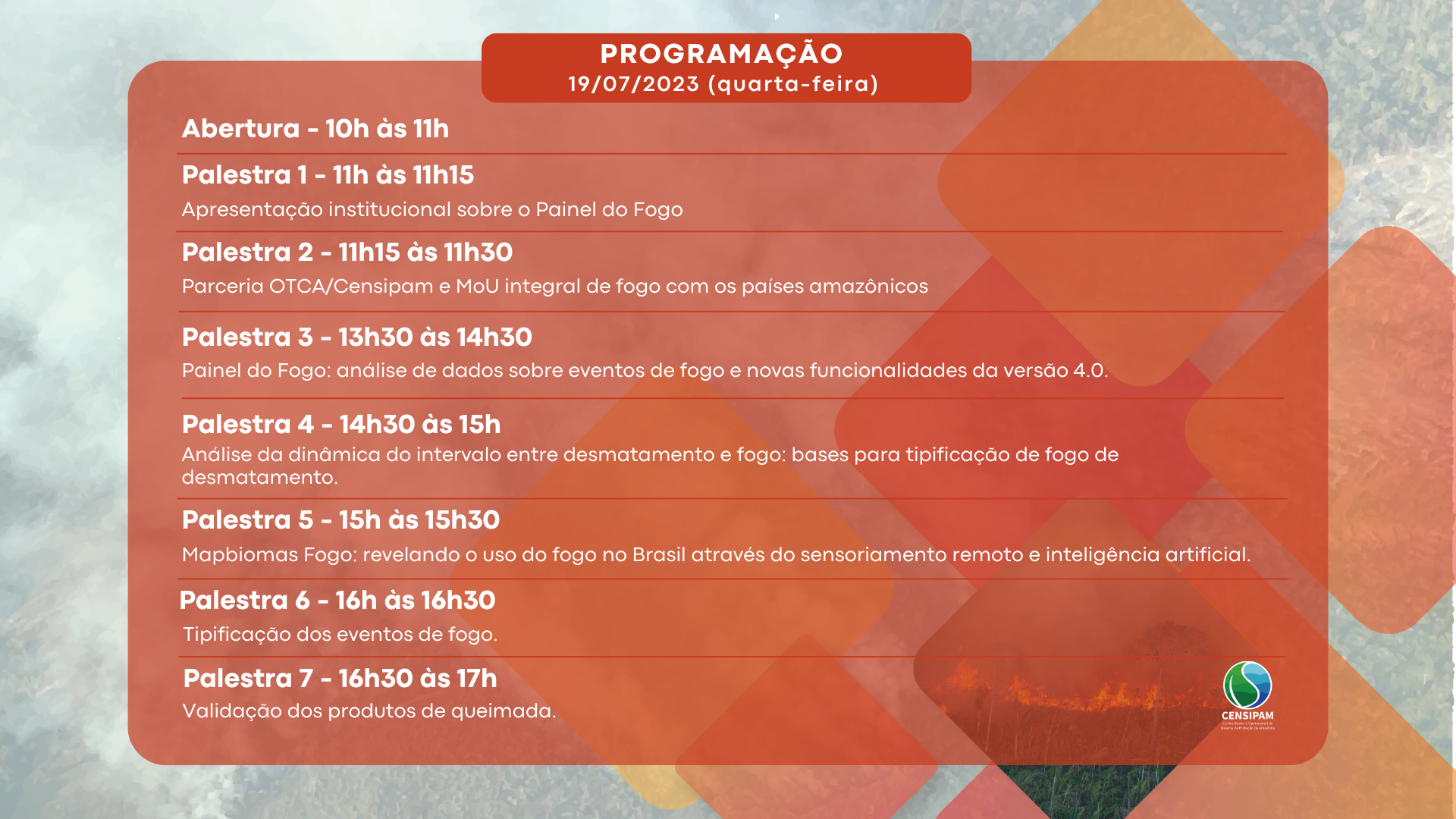 Durante o evento, haverá o lançamento das atualizações e novos produtos disponíveis na versão 2023 do Painel do Fogo, uma ferramenta essencial para o monitoramento e controle de incêndios. Além disso, serão realizadas discussões e treinamentos sobre o uso operacional dessa ferramenta, bem como debates com a comunidade científica sobre as pesquisas em andamento e já realizadas. Uma das novidades da versão 2023 é a expansão do sistema para outros países amazônicos, que são membros da Organização do Tratado de Cooperação Amazônica (OTCA).