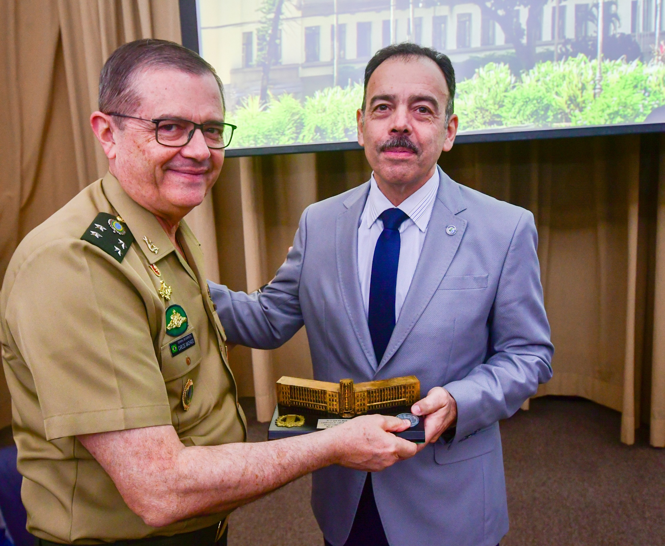Rio de Janeiro (RJ), em 6/10/2025 – O Diretor-Geral do Centro Gestor e Operacional do Sistema de Proteção da Amazônia (Censipam), Richard Fernandez Nunes foi homenageado durante as comemorações pelos 120 anos da Escola de Comando e Estado-Maior do Exército (ECEME), realizadas no Rio de Janeiro. A solenidade contou com a presença de autoridades civis e militares, entre elas o General de Exército Arruda, antigo comandante do Exército Brasileiro. Os convidados foram recepcionados pelo Comandante da Escola e anfitrião da atividade, General de Brigada Sassone.
