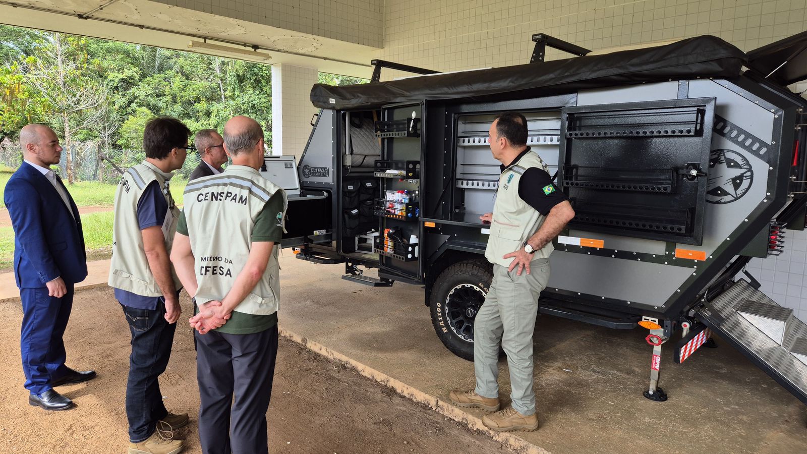 Entre os temas abordados, foram apresentados os preparativos do Censipam para participação nas operações de desintrusão em terras indígenas, bem como os procedimentos de manutenção e emprego de drones utilizados em atividades de monitoramento ambiental e apoio a ações de campo. O secretário também conheceu a carreta de apoio logístico empregada em operações em áreas remotas da Amazônia.