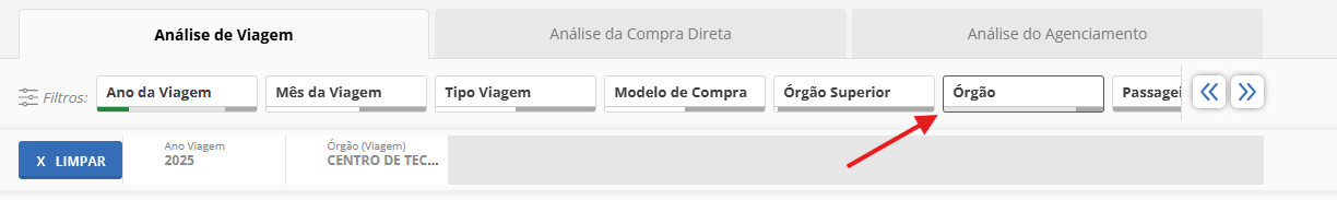 Na sessão de filtro (localizada no topo do painel), escolha a opção “órgão”, conforme imagem abaixo;
