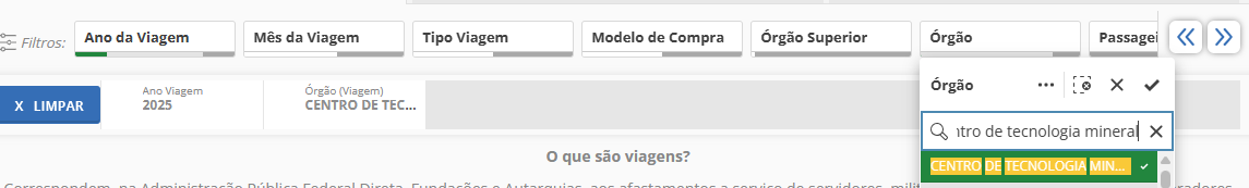 Para encontrar as informações sobre as Viagens a Serviço do CETEM no Portal da Transparência, siga os passos abaixo: