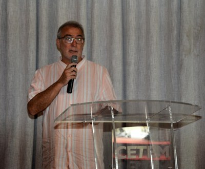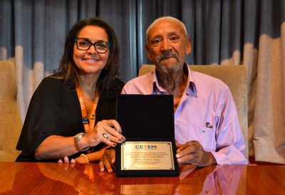 Vicente recebe uma placa de homenagem como um dos fundadores do CETEM