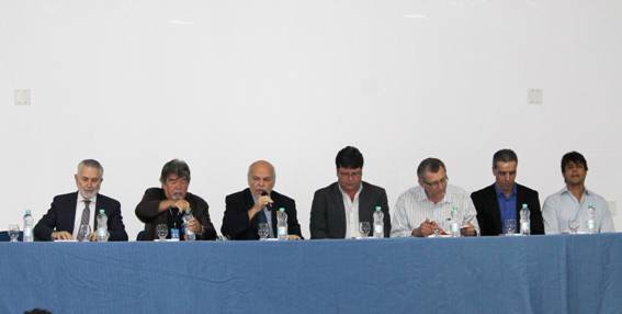 Presidente da ABIROCHAS, Sr. Reinaldo Sampaio; Coordenador do NRES, Dr. Francisco Hollanda Vidal; Diretor do CETEM, Dr. Fernando Freitas; Diretor IFES, Prof. Edson Peixoto; Diretor Presidente FAPES, Dr. José Antônio Buffon; Presidente SINDIROCHAS e do CETEMAG, Sr.Tales Machado; Vice-Presidente do CENTROROCHAS, Sr. Frederico Robinson.