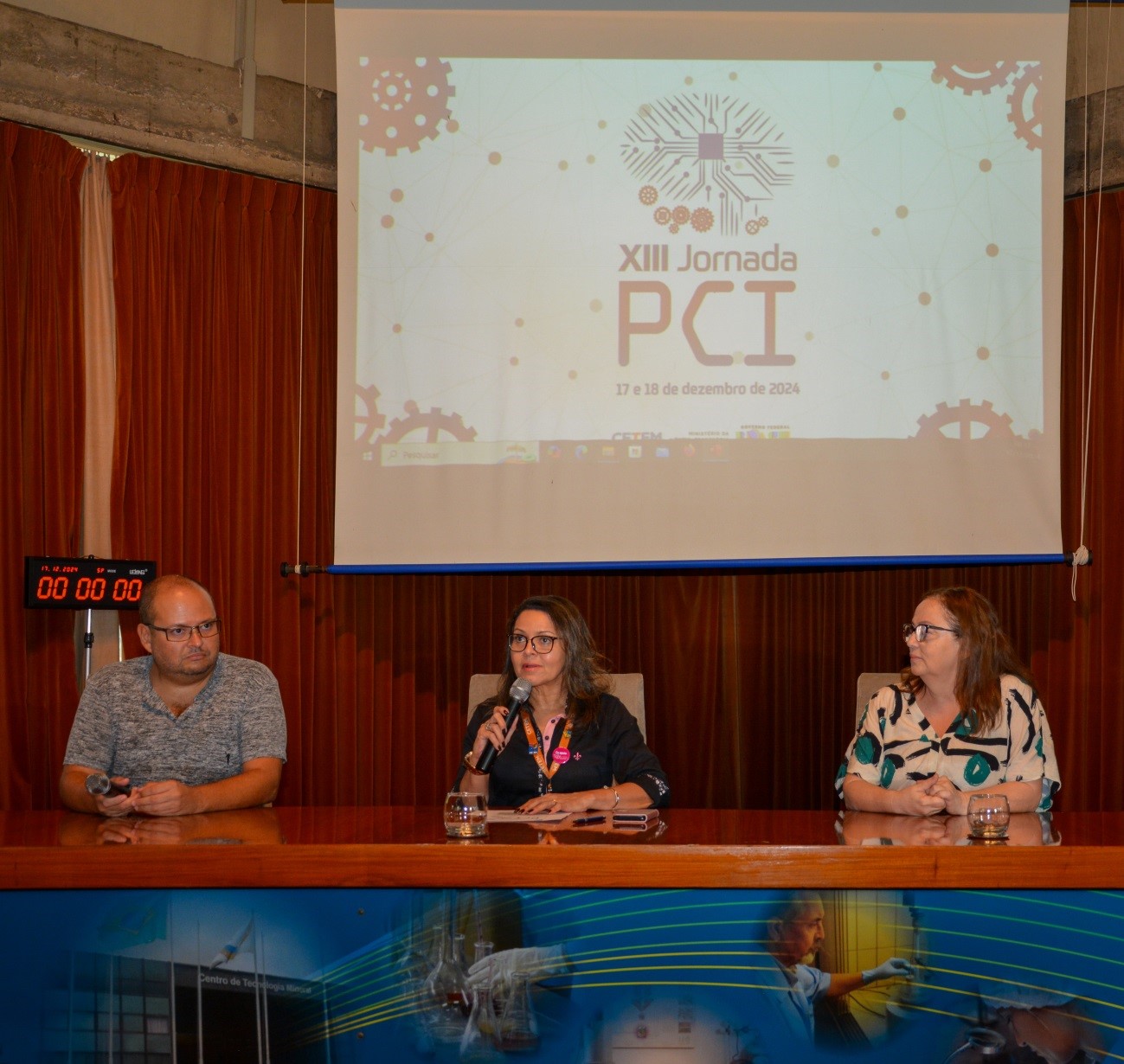 Mesa de abertura: Dr. Otávio da Fonseca Martins Gomes (CETEM), Diretora do CETEM, Dra. Silvia França, Dra. Antonieta Middea (CETEM)