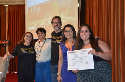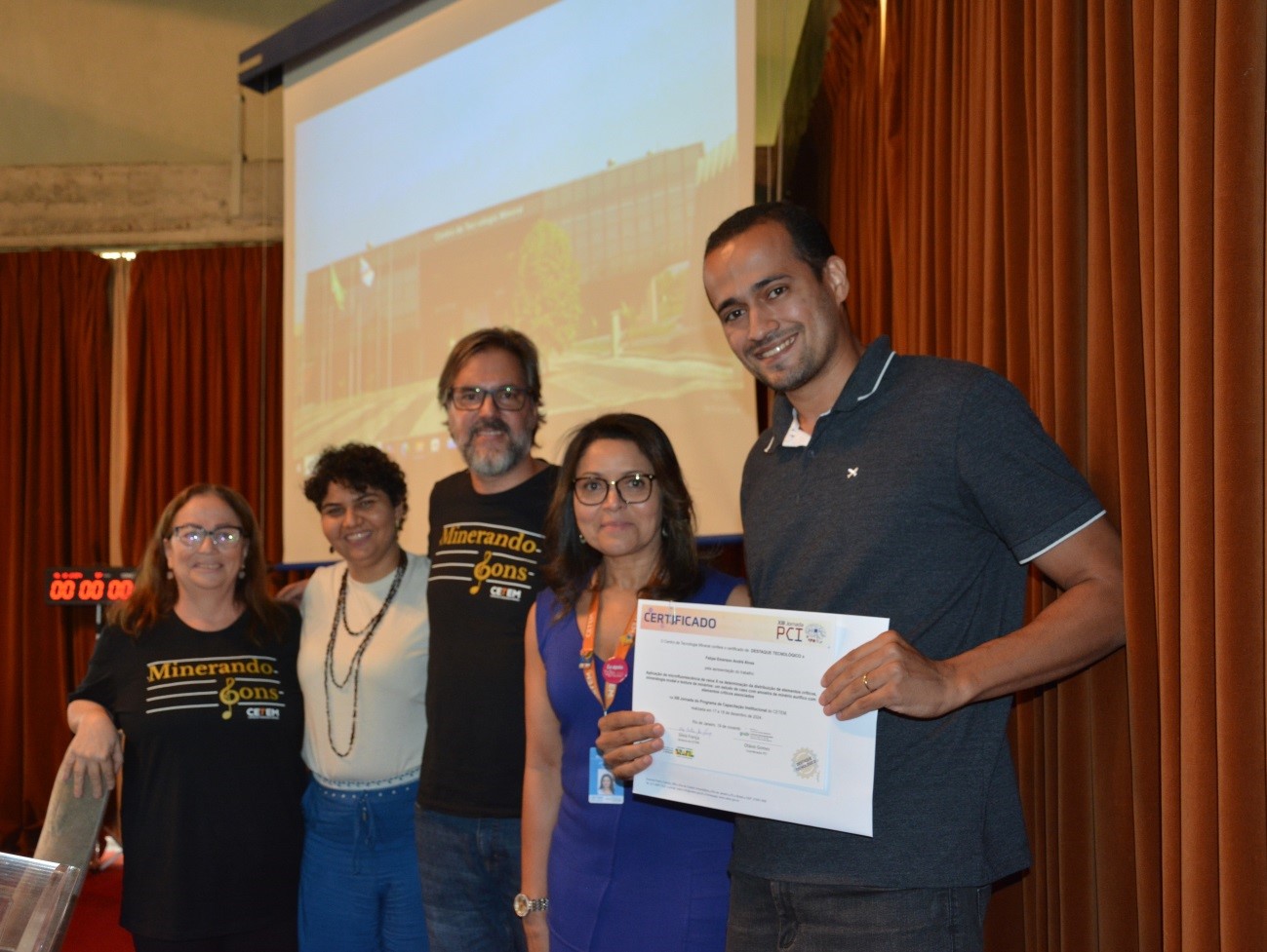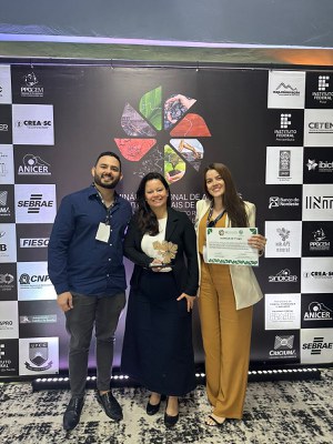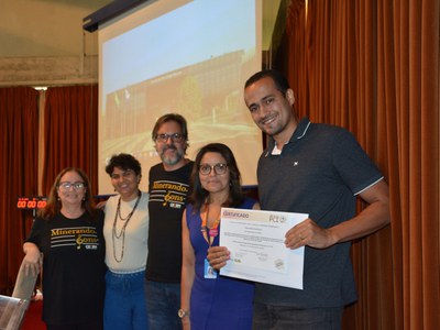 Representantes do CETEM/NRES posando com o prêmio