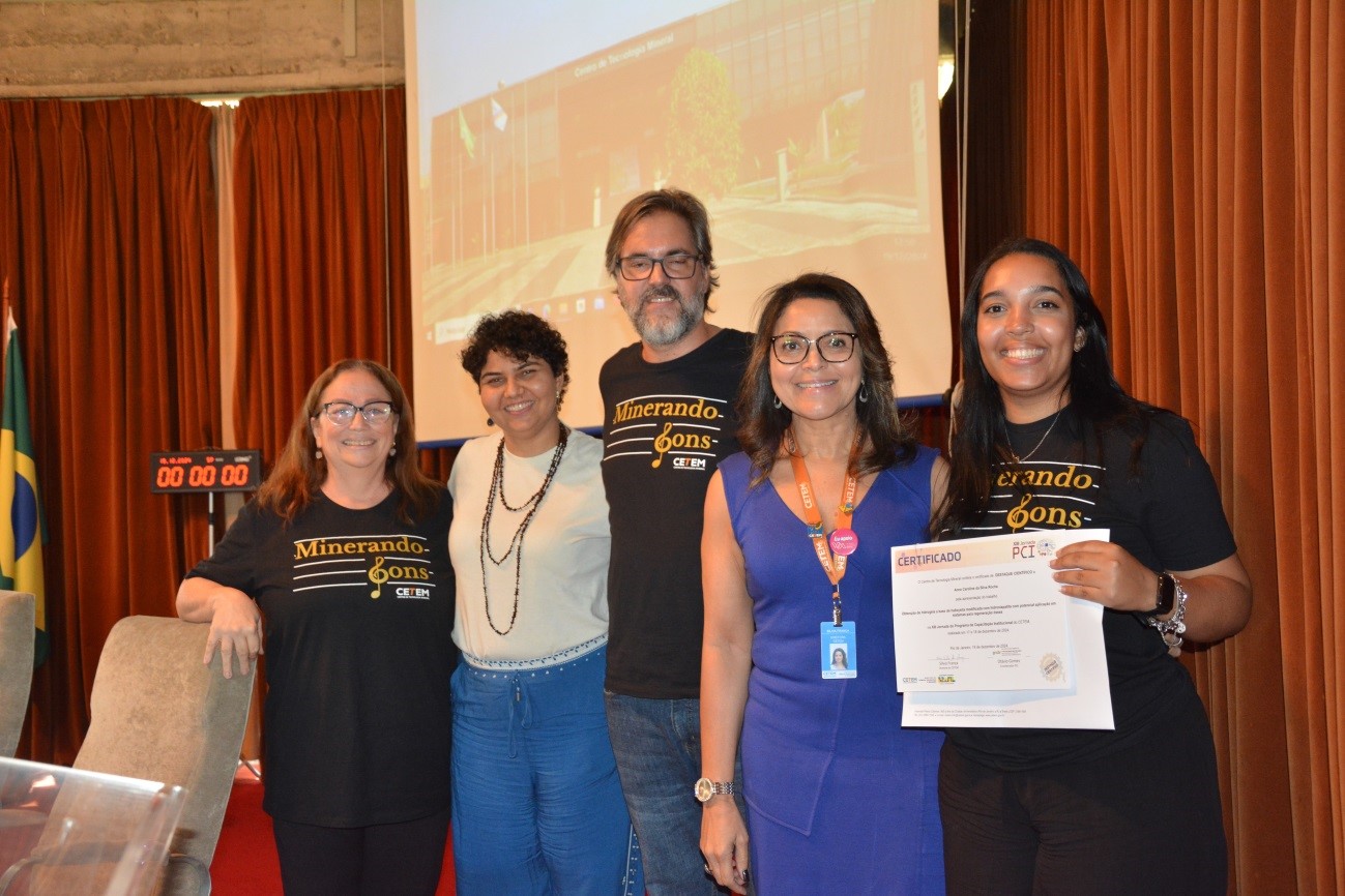 Dra. Silvia França (CETEM), Prof. Fabiano Faulstich (Museu Nacional/UFRJ), Dra. Caroline Brigido (CETEM), Dr. Otávio da Fonseca Martins Gomes (Coordenador do PCI/MCTI), Dra. Antonieta Middea (CETEM) E Dr. Gabriel Barrios (Metalmat/UFRJ)