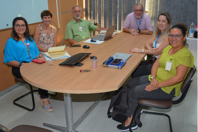 Da esquerda para a direita: Maria Alice Goes (CETEM), Silvia França (Diretora do CETEM), Daniel Tholen, Lorena Villarreal, Carla Ribeiro (CETEM) e Paulo Braga (CETEM)