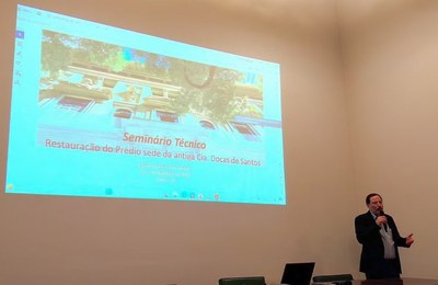 Adelson de Castro, integrante da equipe SETEMAG/CETEM, realizando a apresentação em pitch