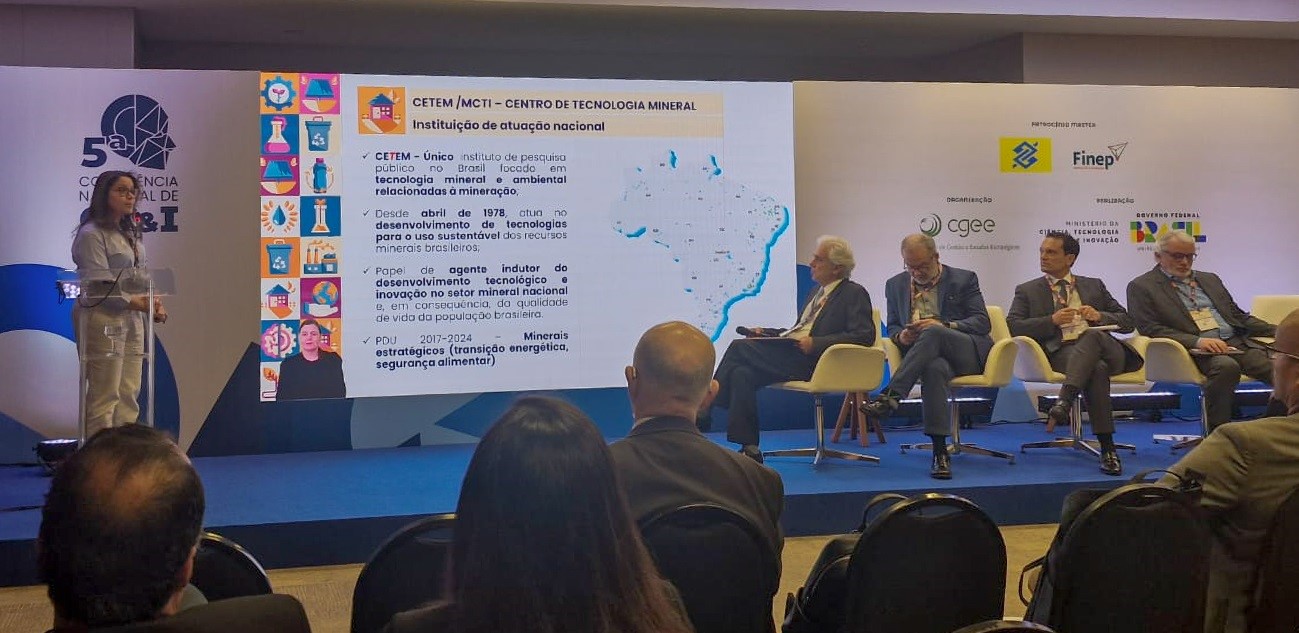 Silvia França, diretora do CETEM, realizando sua apresentação na 5ª CNCTI