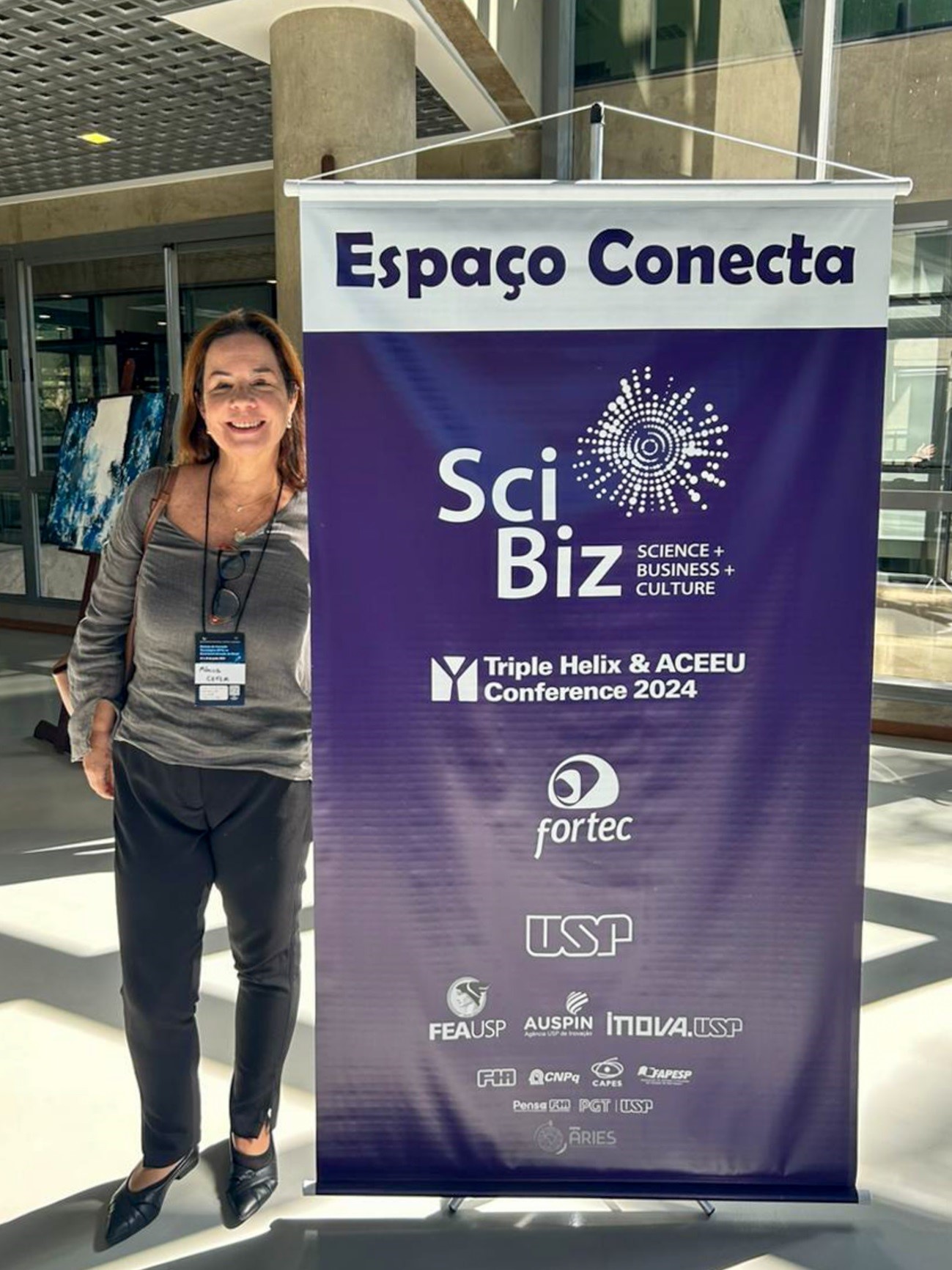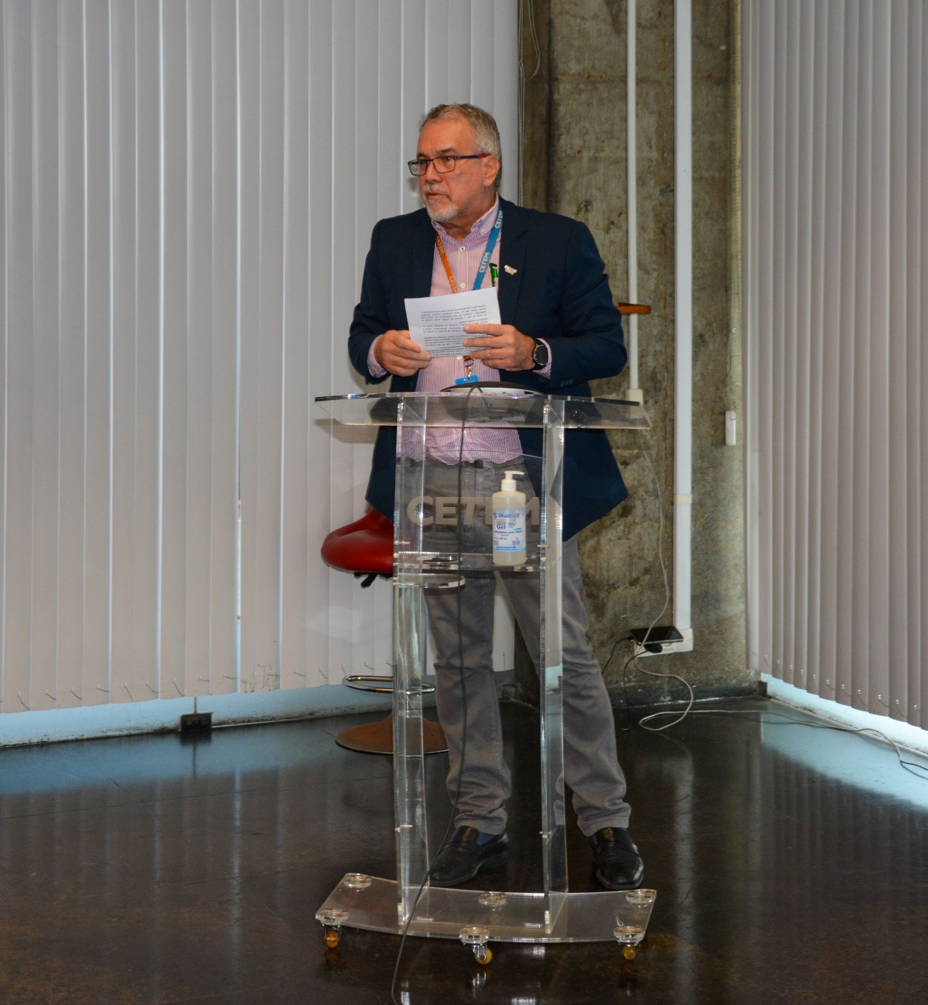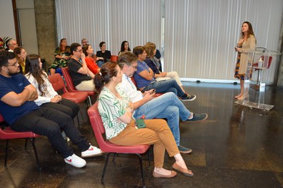 Natalia Ladeira, integrante da equipe de Inteligência de Mercado/MCTI, apresentando os projetos selecionados na primeira fase do Desafio GRANIOTER 2024