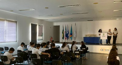Alunos do IFES ministrando palestras no NRES/CETEM