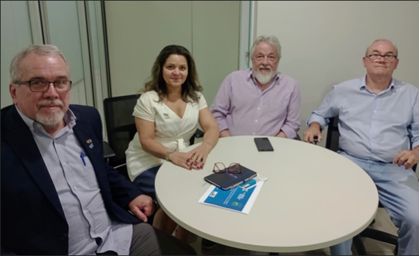 Da esquerda para a direita: Lúcia Xavier (CETEM), Rodrigo Cota (Diretor do Departamento de Tecnologia e Transformação Mineral - DTTM/MME), Silvia França (CETEM), Daniel Godinho (Diretor de sustentabilidade e relações institucionais do Grupo Weg), Paulo Braga (CETEM) e Marcos Berton (Pesquisador Chefe do Instituto SENAI de Inovação em Eletroquímica).
