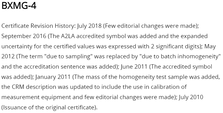 Certificate SDS Certificate Revision History