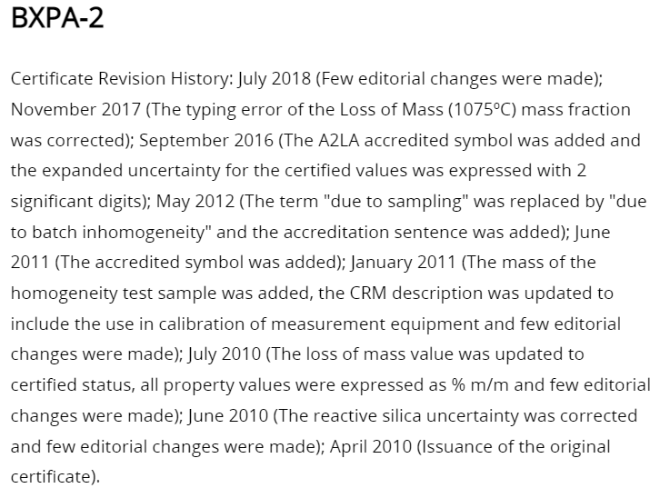 Certificate SDS Certificate Revision History