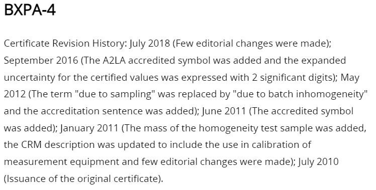 Certificate SDS Certificate Revision History