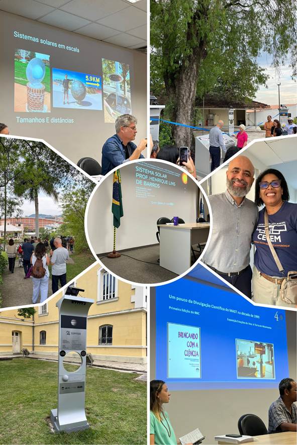 O CETEM marcou presença na inauguração do Sistema Solar Prof. Henrique Lins de Barros, representado pela bibliotecária Rosana Oliveira. O evento ocorreu ontem (2/12), no auditório Ronaldo Mourão, no Museu de Astronomia e Ciências Afins (MAST/MCTI).