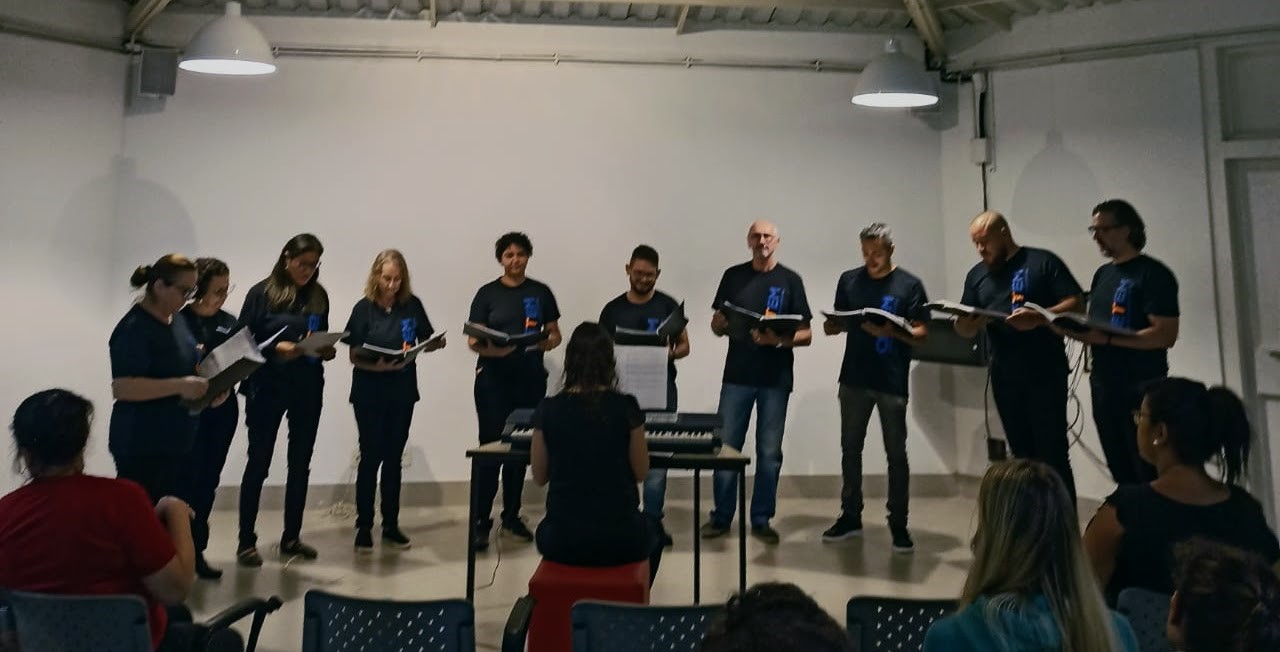 Hoje (11), na Tenda Lobo Carneiro, no Espaço COPPE da UFRJ, foi realizado o encontro dos corais Minerando Sons do CETEM e José Cristano da COPPE, ambos sob a regência da maestrina Danielly Souza.