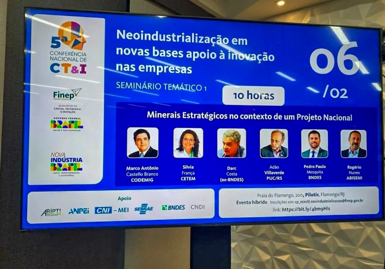 A diretora do CETEM, Silvia França, participou ontem (06/02) do 5º Seminário sobre Neoindustrialização em novas bases e apoio à inovação nas empresas, organizado pela Finep. Essa edição do evento abordou o tema: minerais estratégicos no contexto de um projeto nacional.