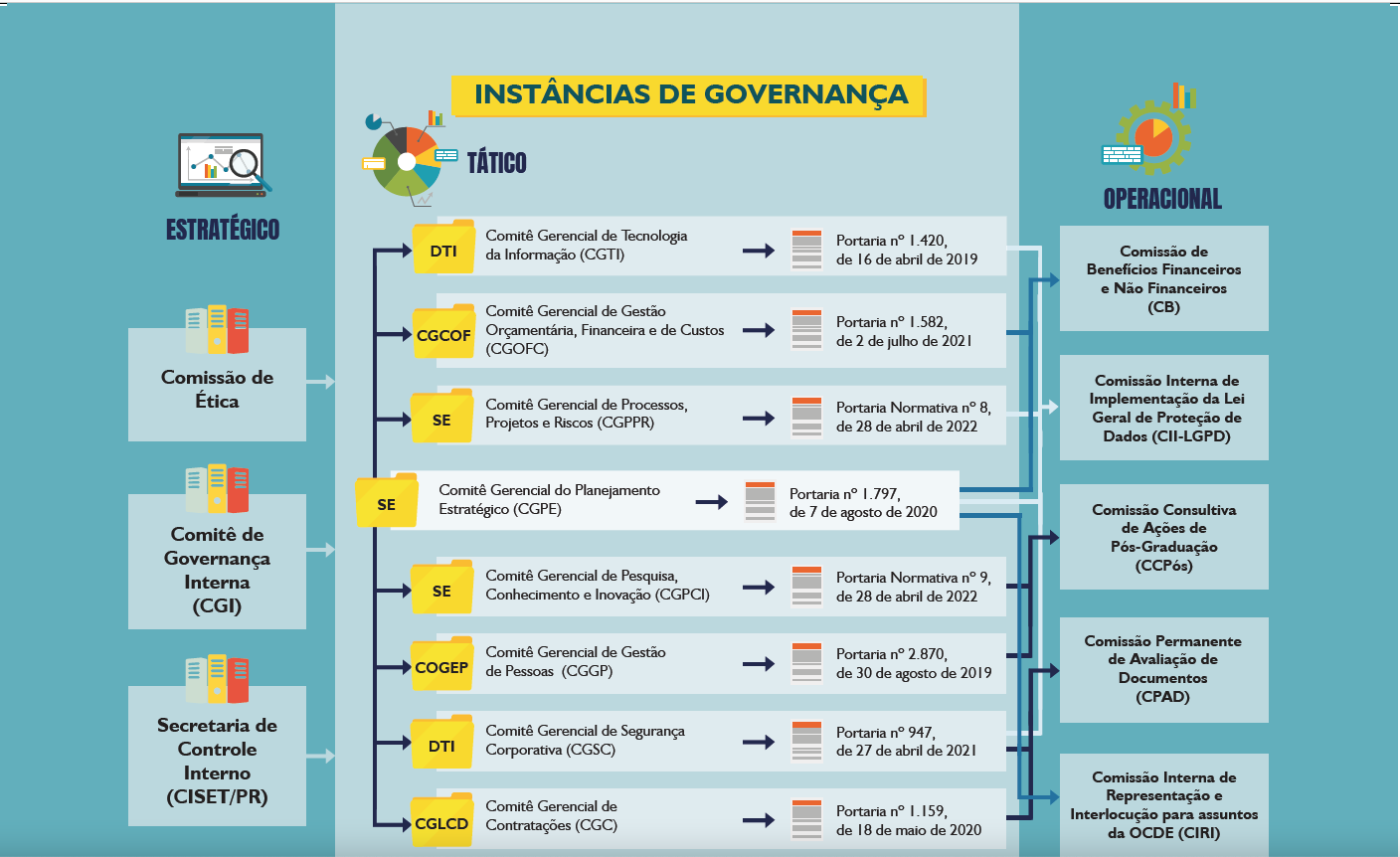 Recentemente, foi atualizada a estrutura de governança para a gestão da Segurança Corporativa da CGU, por meio da Portaria CGU nº 1.324, de 5 de abril de 2019, a qual foi revogada pela Portaria 947, de 27 de abril de 2021. Instituiu-se o Comitê Gerencial de Segurança Corporativa - CGSC, que detém a competência de auxiliar o Comitê de Governança Interna - CGI na execução de suas competências em políticas de segurança da informação e comunicações; estabelecer diretrizes, objetivos, iniciativas e indicadores relacionados à Segurança Corporativa; monitorar e avaliar, anualmente, as ações de Segurança Corporativa e aprovar normas atinentes à Segurança Corporativa.