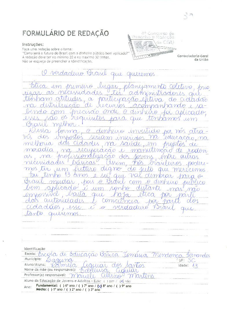 Pâmela Aguiar dos Santos- Escola de Educação Tomásia Mendonça Fernandes