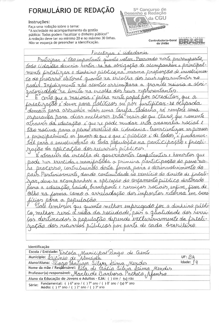 Diogo Thauan Silva Lima Mendes- Escola Municipal Pingo de Gente