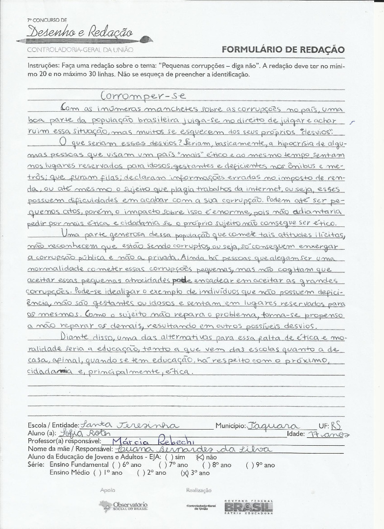 7º Concurso de Desenho e Redação da CGU - 2015