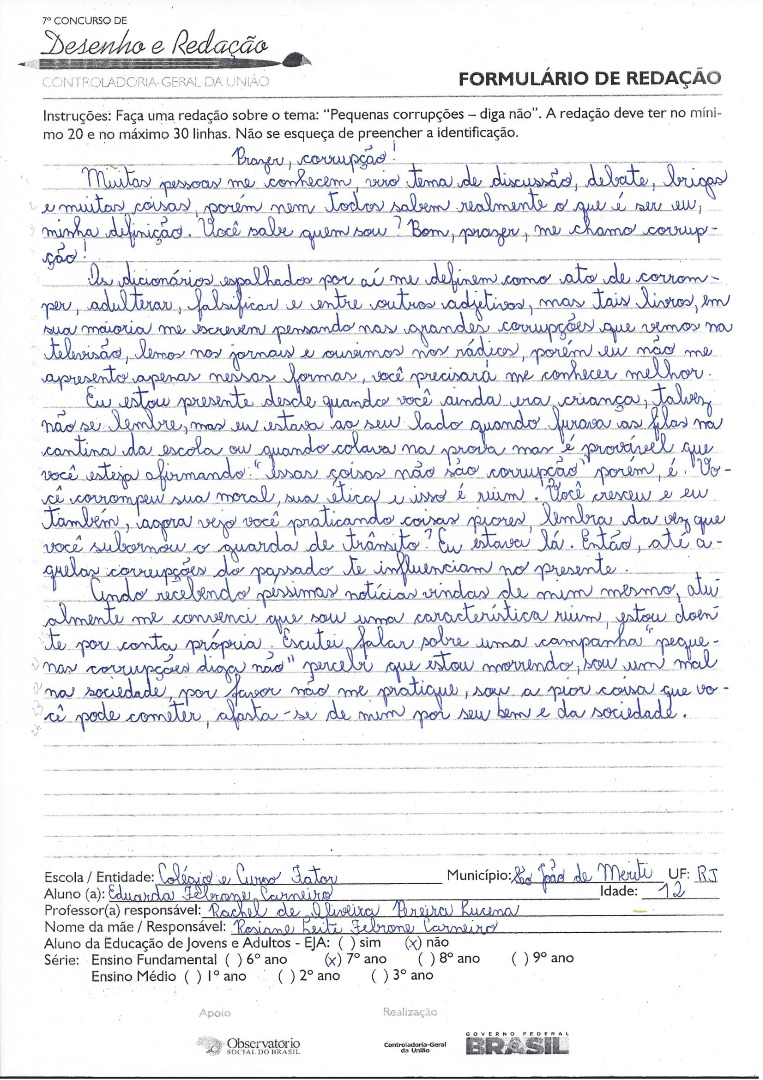 7º Concurso de Desenho e Redação da CGU - 2015