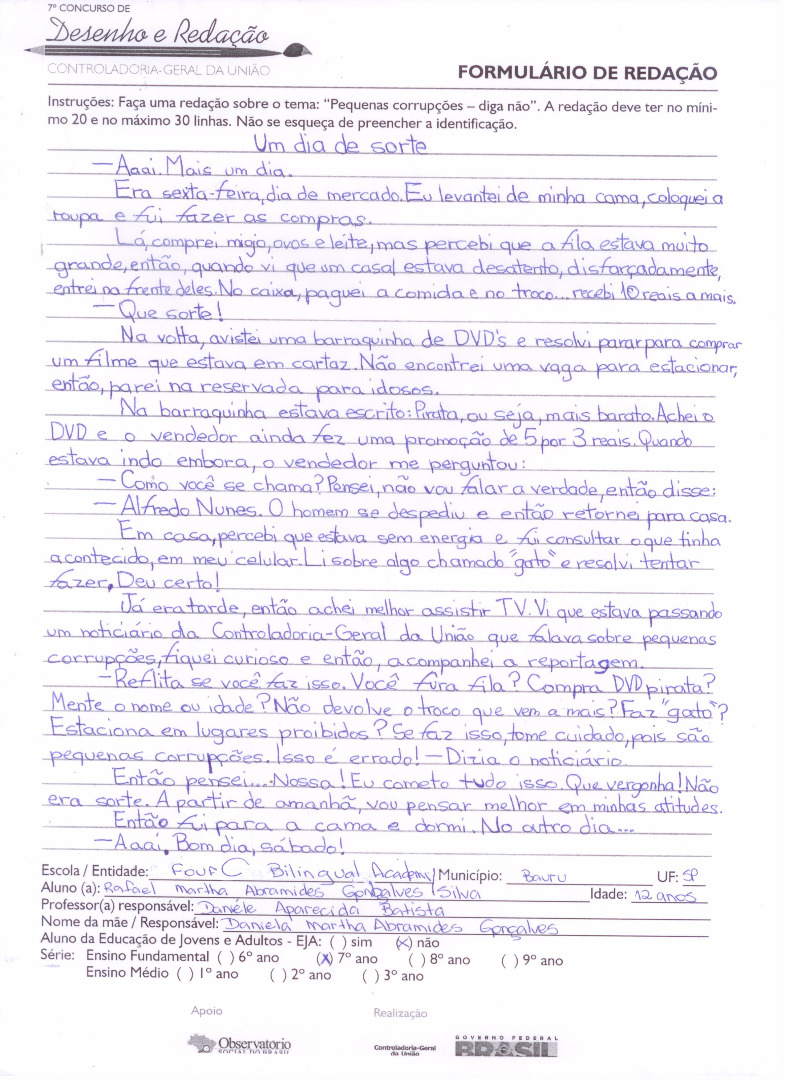 7º Concurso de Desenho e Redação da CGU - 2015
