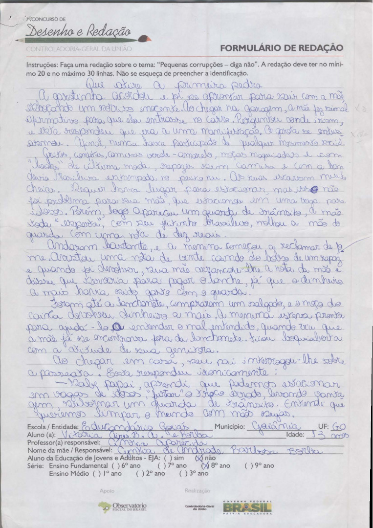 7º Concurso de Desenho e Redação da CGU - 2015