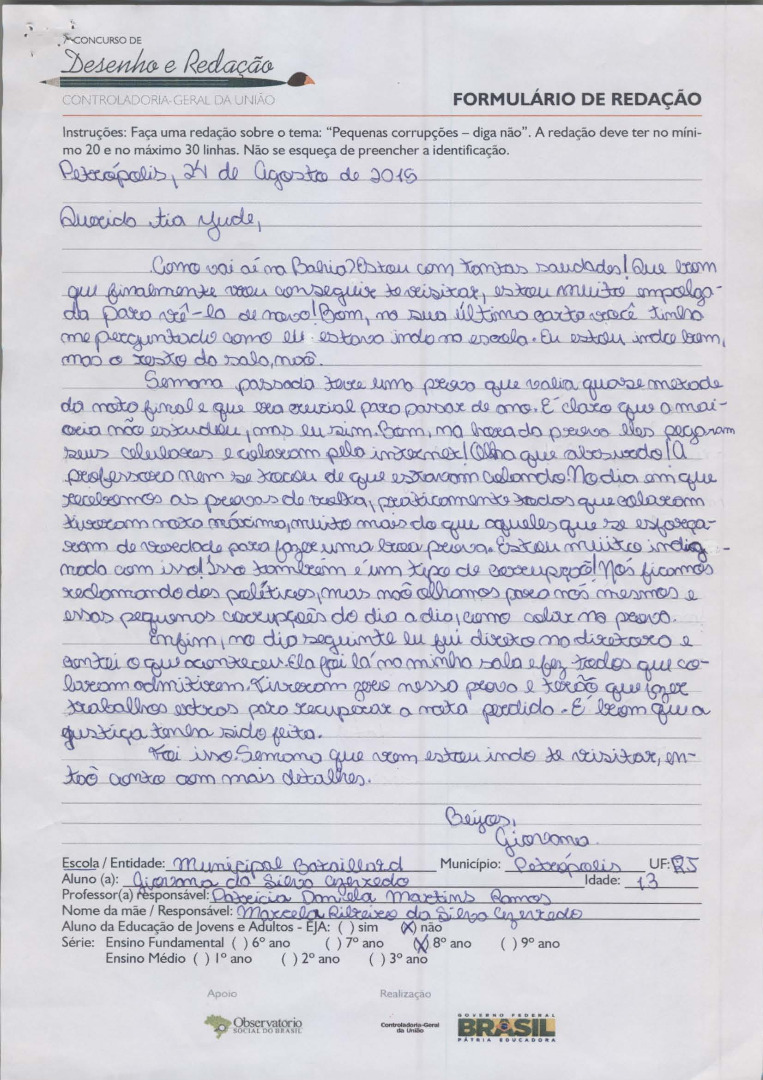 7º Concurso de Desenho e Redação da CGU - 2015