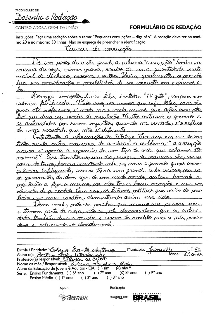 7º Concurso de Desenho e Redação da CGU - 2015