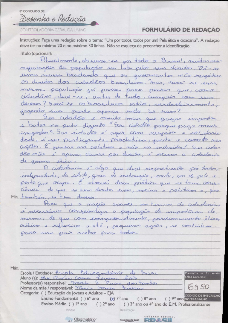 8°Concurso de Desenho e Redação da CGU- 2016