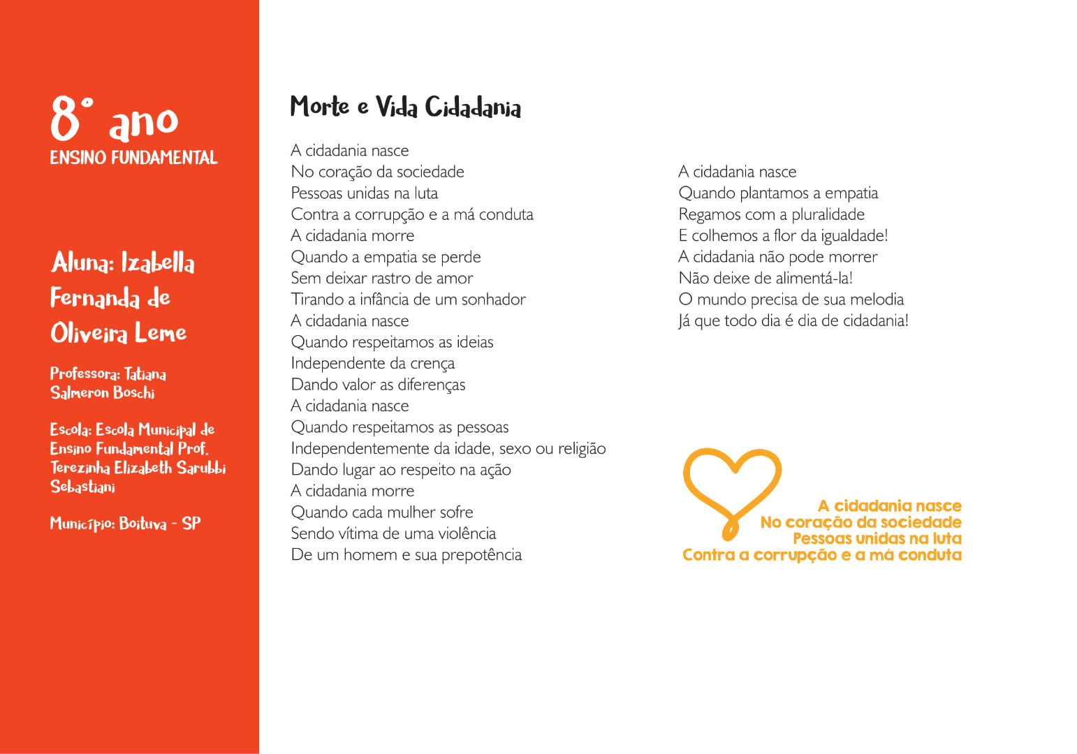 Izabella Fernanda de Oliveira Leme- Escola Municipal de Ensino Fundamental Prof. Terezinha Elizabeth Sarubbi Sebastiani