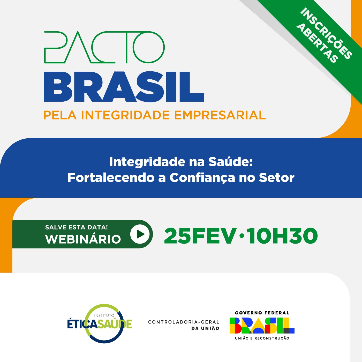 O webinar é resultado da parceria entre a Controladoria-Geral da União (CGU) e o Instituto Ética Saúde (IES), organização que atua como Apoiadora Institucional do Pacto Brasil.